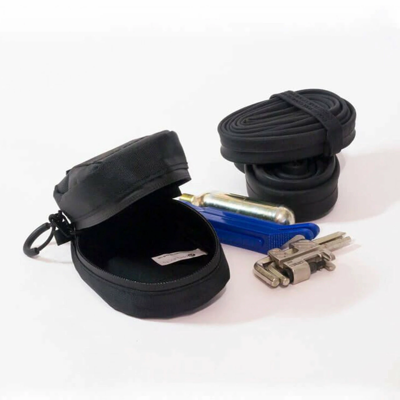 0.4 Liter wirken wenig – aber für viele wichtige Gegenstände ausreichend. Zum Beispiel passen 2 Standard-Schläuche, Reifenheber, Multitool, Flicken und Co2-Patrone oder ein 29er-Schlauchreifen, Multitool, Reifenheber bis 100 mm Länge und ein Tubeless-Repairset.