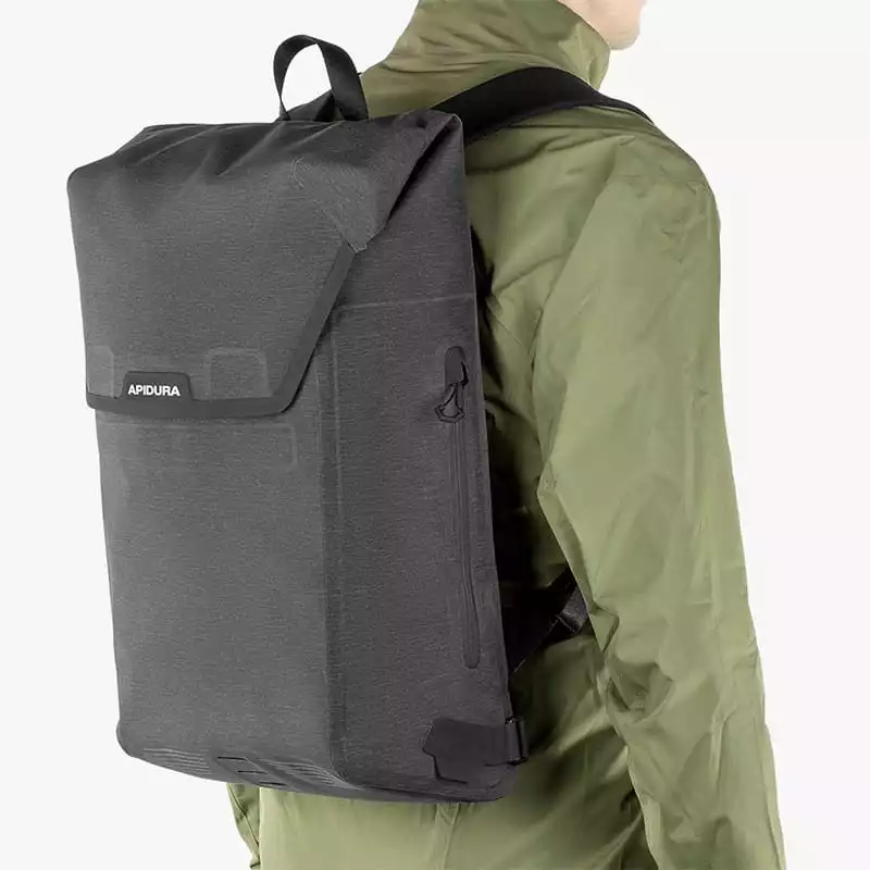 Der Apidura City Backpack fügt sich perfekt in das Sortiment von Apidura ein. Die Inspiration kommt vom Backpacking und ist perfekt an eine Urbane Umgebung angepasst – der perfekte Commuting-Rucksack also. Durch eine große Hauptklappe, welche mit Klett und einem zusätzlichen Haken verschlossen werden kann, erhaltet ihr Zugriff auf das großzügige Innenfach. Für den schnellen Zugriff könnt ihr auf das zusätzliche verschlissen mit dem Haken verzichten.Der sehr leichte (765 Gramm) und wasserdichte Rucksack überzeugt durch ein schlichtes, zielgerichtetes Design. Hochwertigen Materialien und die tadellose Verarbeitung sorgen für eine lange Lebensdauer. Weiche Gurte und ein Brust- und Beckengurt sorgen für ausgezeichneten Tragekomfort.