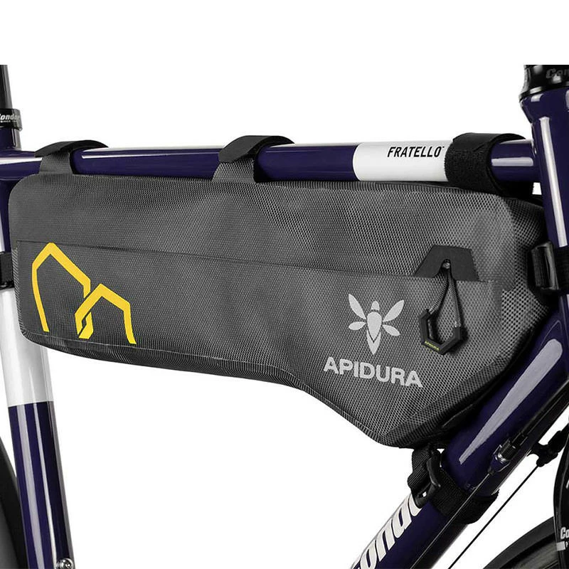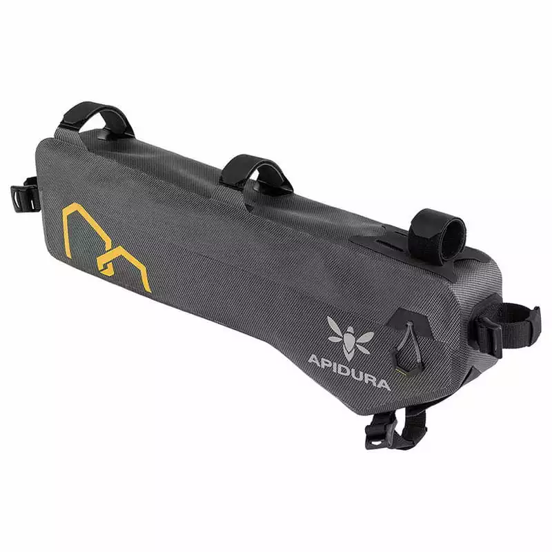 Die Expedition Rahmentasche wird aus 3-lagigem laminiertem Stoff hergestellt – extra nach Apidura-Vorgaben. Das Material ist leicht und gleichzeitig sehr abrieb- und reißfest. Die sichtbaren Schweißnähte zeigen zudem die Wasserfestigkeit.