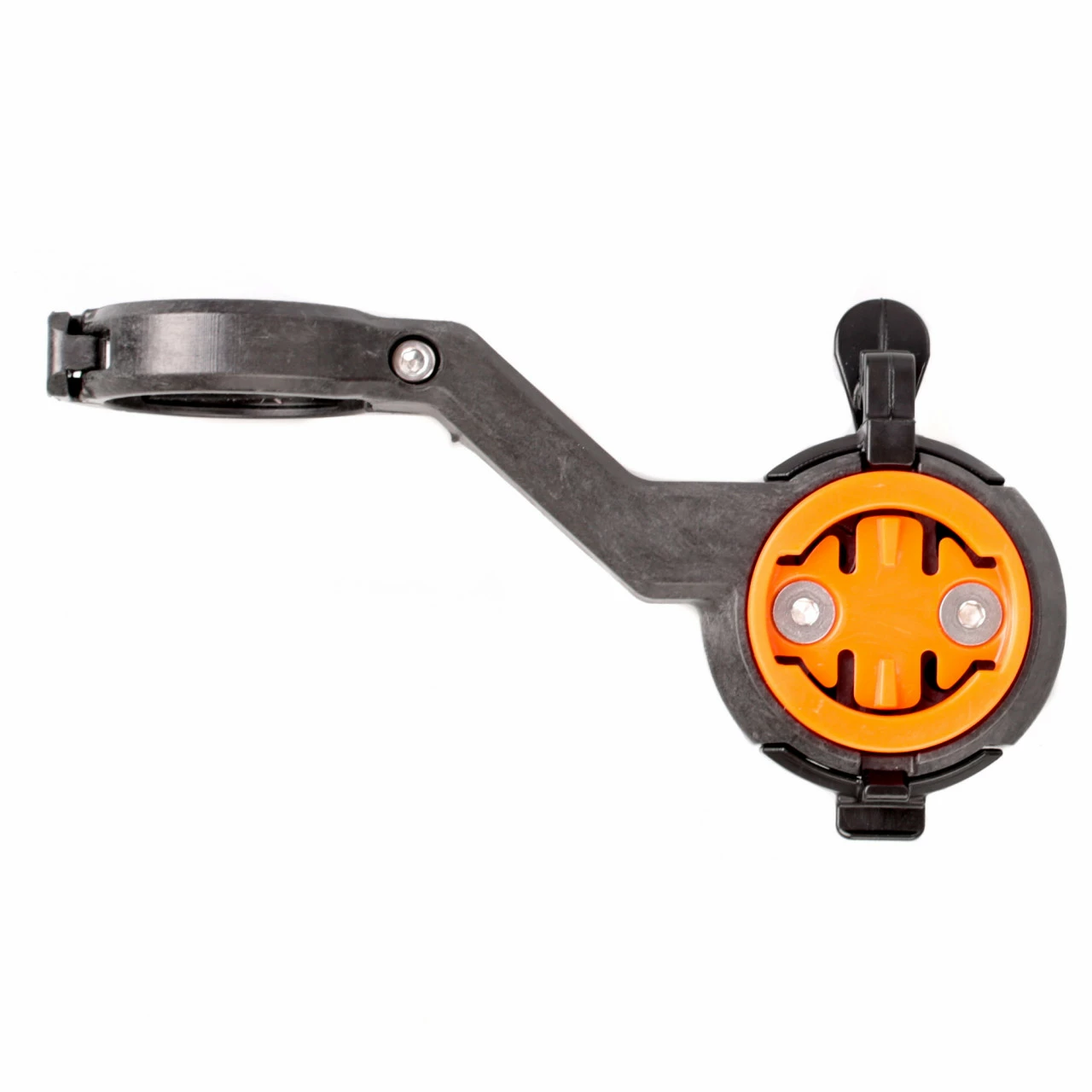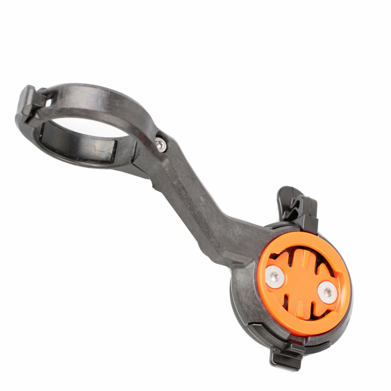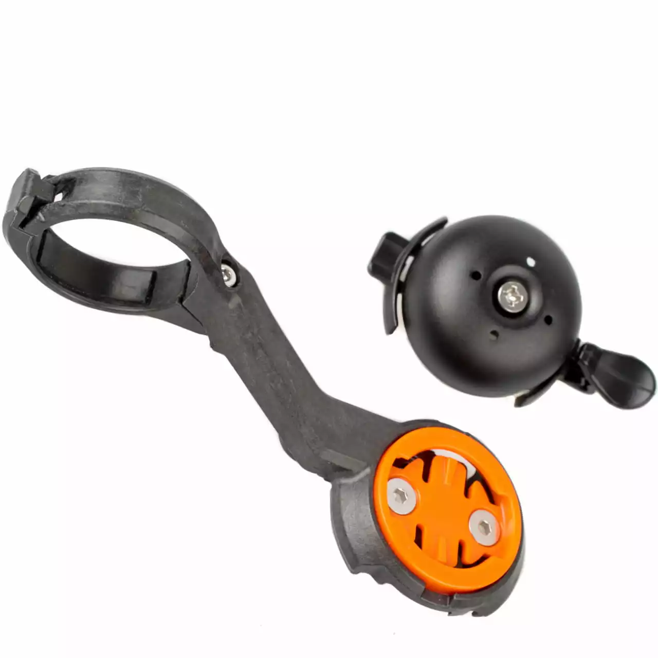 An dieser cleveren Halterung kannst du sowohl einen Fahrradcomputer als auch eine Klingel anbringen. Die Klingel ist dabei so geschickt platziert, dass man sie kaum sieht. Außerdem lässt sich die Klingel sowohl von links als auch von rechts bedienen. Bei Bedarf kann die Halterung um einen separat erhältlichen Adapter für eine GoPro oder ein Licht erweitert werden.