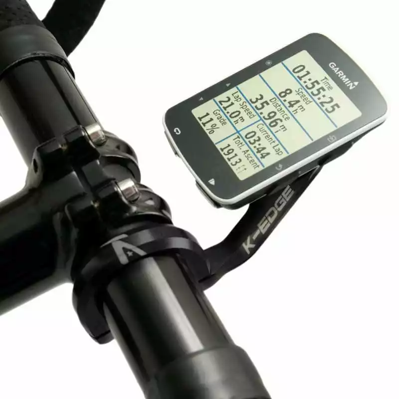 Die spezielle Form der K-Edge Halterungen ermöglicht das Platzieren des Bike-Computers direkt vor dem Lenker, idealerweise direkt in der Mitte (kann aber auch seitlich montiert werden). Dies sieht schick aus und aerodynamisch auch von Vorteil.