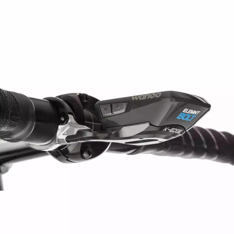 Der K-Edge Aero Race Mount ermöglicht eine mittige Einstellung in Verlängerung des Vorbaus. Das Gehäuse des Elemnt Bolt integriert sich förmlich in den Halter.