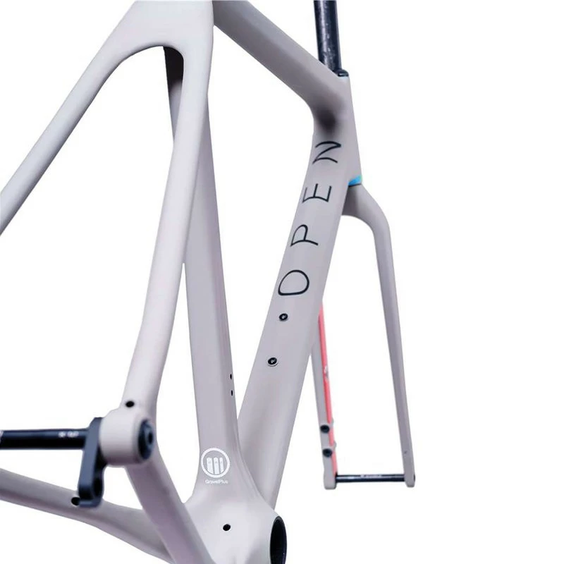 Ohne Marketing-Gedöns sagt der Rahmenbauer Gerard Vroomen, dass es beim Rahmen darauf ankommt, dass das richtige Carbon an der richtigen Stelle verbaut wird.Für das Open U.P. werden verschiedene Carbon-Arten eingesetzt, je nach dem, wo mehr oder weniger Steifigkeit benötigt wird. Nur an den richtigen Stellen wird „highest modulus“ (höchste Steifigkeit) Carbonfaser eingesetzt. Das erlaubt die sehr hohe Steifigkeit bei hohem Komfort, Haltbarkeit im Gelände und das Ganze bei einem Gewicht, an das viele namhafte Rennradrahmen nicht rankommen.