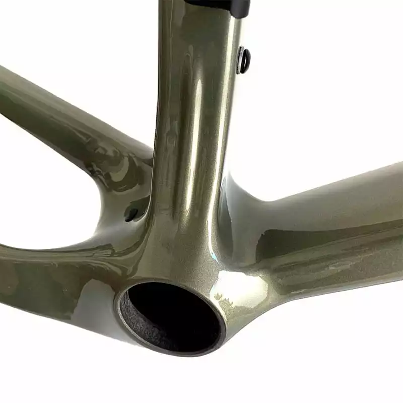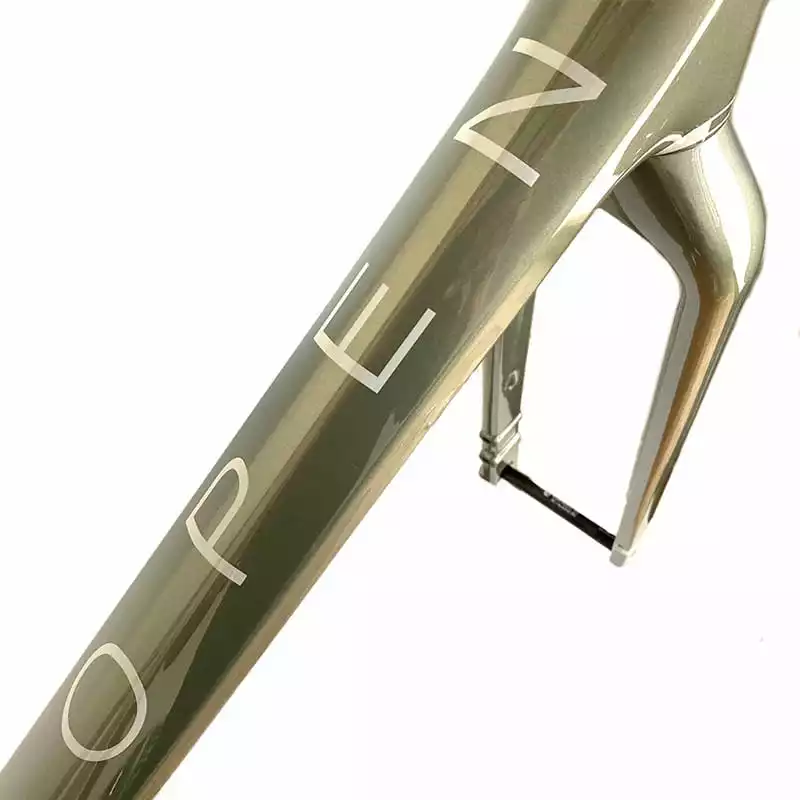 Ohne Marketing-Gedöns sagt der Rahmenbauer Gerard Vroomen, dass es beim Rahmen darauf ankommt, dass das richtige Carbon an der richtigen Stelle verbaut wird.Für das Open U.P. werden verschiedene Carbon-Arten eingesetzt, je nach dem, wo mehr oder weniger Steifigkeit benötigt wird. Nur an den richtigen Stellen wird „highest modulus“ (höchste Steifigkeit) Carbonfaser eingesetzt. Das erlaubt die sehr hohe Steifigkeit bei hohem Komfort, Haltbarkeit im Gelände und das Ganze bei einem Gewicht, an das viele namhafte Rennradrahmen nicht rankommen.