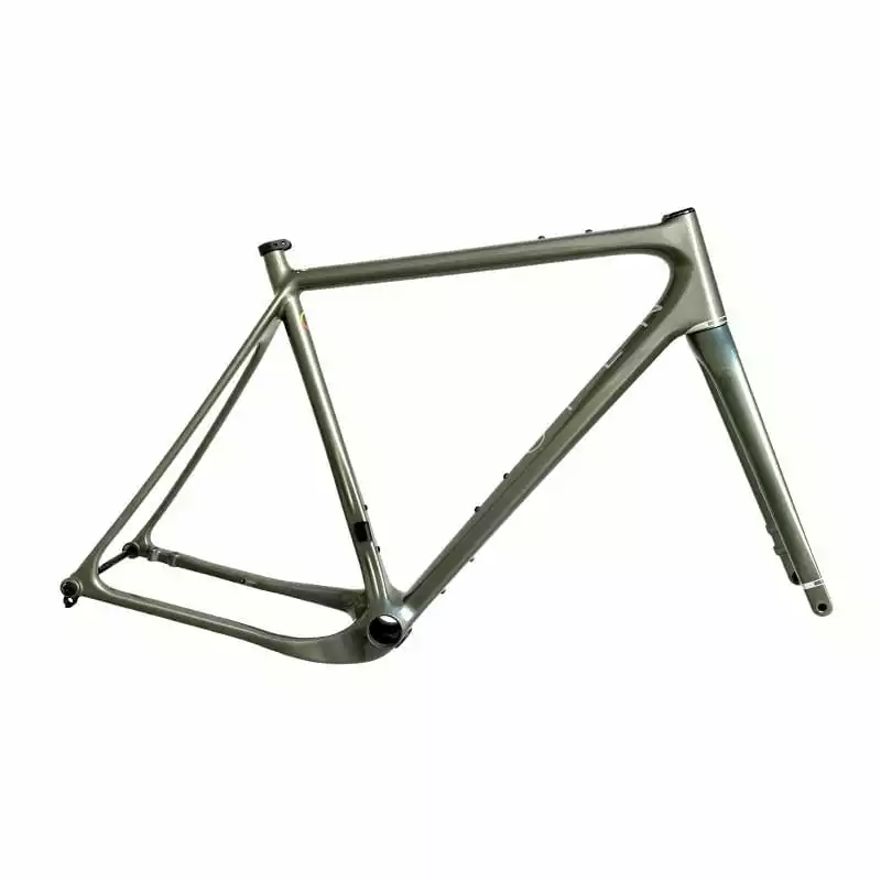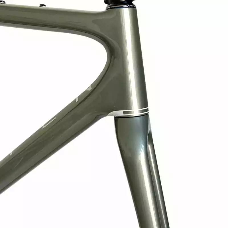Ohne Marketing-Gedöns sagt der Rahmenbauer Gerard Vroomen, dass es beim Rahmen darauf ankommt, dass das richtige Carbon an der richtigen Stelle verbaut wird.Für das Open U.P. werden verschiedene Carbon-Arten eingesetzt, je nach dem, wo mehr oder weniger Steifigkeit benötigt wird. Nur an den richtigen Stellen wird „highest modulus“ (höchste Steifigkeit) Carbonfaser eingesetzt. Das erlaubt die sehr hohe Steifigkeit bei hohem Komfort, Haltbarkeit im Gelände und das Ganze bei einem Gewicht, an das viele namhafte Rennradrahmen nicht rankommen.