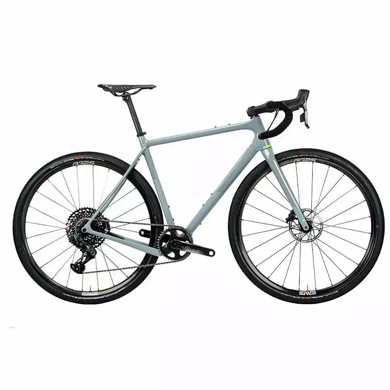 Bereits in den letzten Jahren gab es ein OPEN WI.DE Komplettrad. Dieses Jahr hat sich OPEN mit dem Premium-Hersteller ENVE zusammengetan und hat ein Gravelbike der Superlative geschaffen. Neben dem superleichten WI.DE Rahmen ist das Bike mit Carbon-Komponenten von ENVE ausgestattet. (Detaillierte Spezifikationen zum Open WI.DE Rahmen findest du hier).