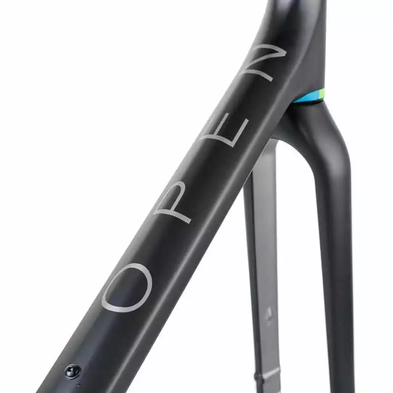 Ohne Marketing-Gedöns sagt der Rahmenbauer Gerard Vroomen, dass es beim Rahmen darauf ankommt, dass das richtige Carbon an der richtigen Stelle verbaut wird.Für das Open U.P. werden verschiedene Carbon-Arten eingesetzt, je nach dem, wo mehr oder weniger Steifigkeit benötigt wird. Nur an den richtigen Stellen wird „highest modulus“ (höchste Steifigkeit) Carbonfaser eingesetzt. Das erlaubt die sehr hohe Steifigkeit bei hohem Komfort, Haltbarkeit im Gelände und das Ganze bei einem Gewicht, an das viele namhafte Rennradrahmen nicht rankommen.