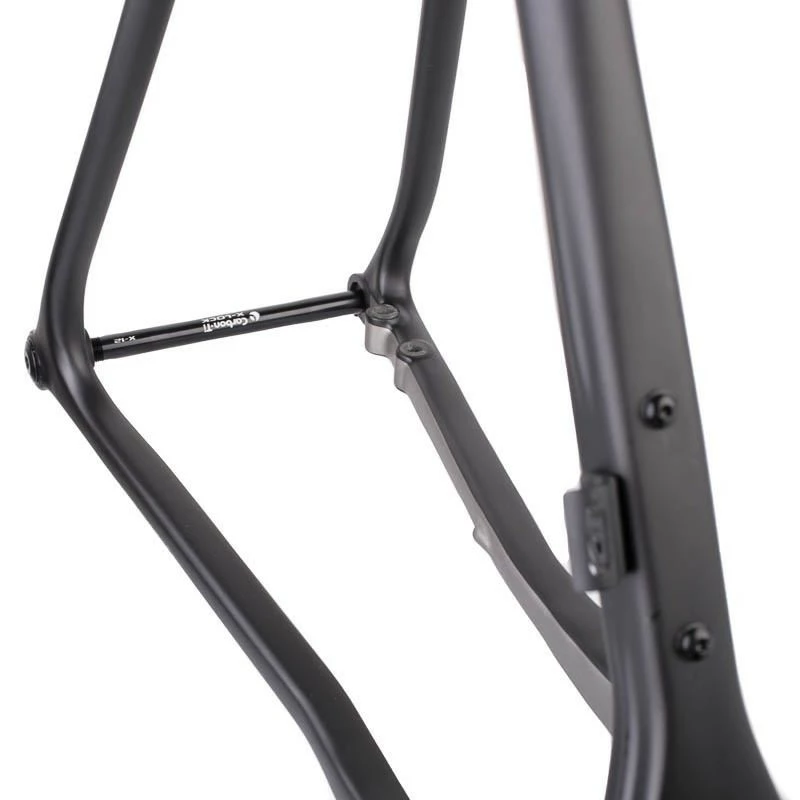 Um die breiten Reifen in Verbindungen mit den verschiedenen elektrischen Schaltungen kombinierbar zu machen, wird auf den Umwerfer verzichtet, da bereits 1×13 Schaltungen auf dem Markt sind.