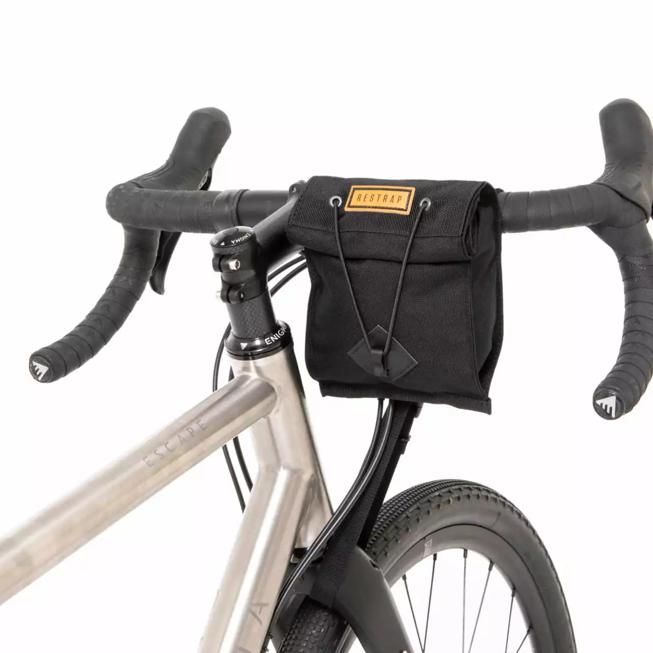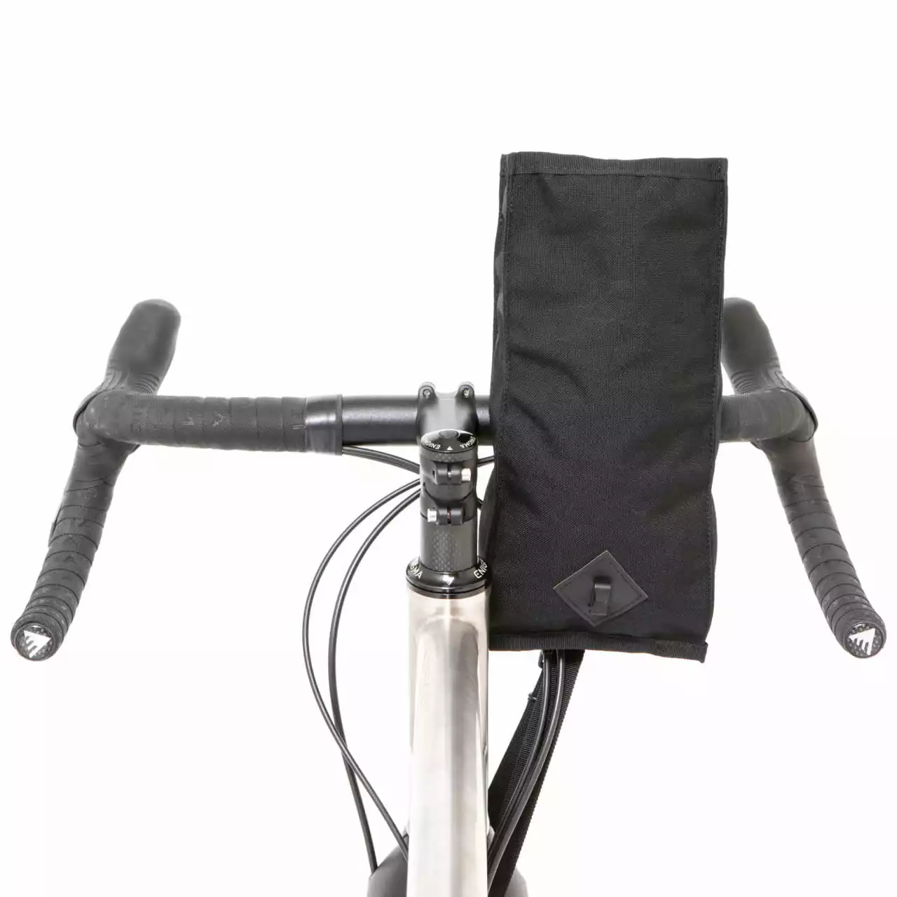 Die Tech Bag des britischen Herstellers Restrap ist ideal für den schnellen Zugriff auf wichtige persönliche Gegenstände – sei es das Smartphone, Geldbeutel, Schlüssel, Kreditkarte oder eine flache Kompakt- oder Actionkamera. Die Tasche kann mittig, auf beiden Seiten des Vorbaus sowie aus Fahrersicht sowohl vor als auch hinter dem Lenker befestigt werden. Damit ist sie variabel und unabhängig von bereits am Lenker montiertem Equipment einsetzbar. Die robusten und wasserabweisenden Materialien in Kombination mit dem Rolltop schützen den Tascheninhalt zuverlässig vor Schmutz und Feuchtigkeit. Bei Gravel- und Tourenrädern mit Scheibenbremse wird die Restrap Tech Bag mit dem unteren Riemen direkt an der Gabel befestigt. Bei anderen Rädern kann die Lenkertasche mit dem unteren Riemen alternativ auch am Steuerrohr befestigt werden.