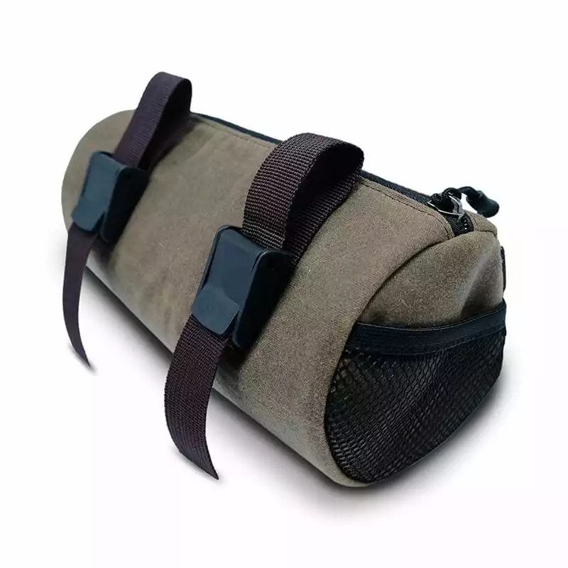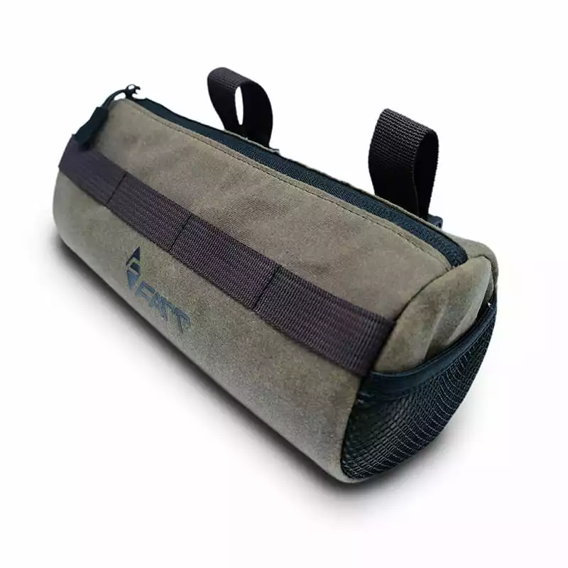 Leichte Lenkertasche für den Alltag und Bikepacking-Touren. Zwei kleine Mesh-Fächer an den Seiten ermöglichen schnellen Zugriff auf Kleinigkeiten während der Fahrt.