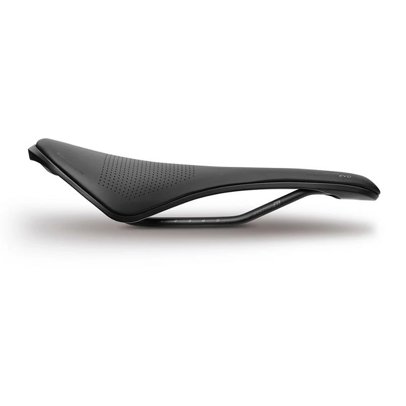 Das gebogene Sattelheck erlaubt es das Becken einfacher zu kippen oder es stellt eine Art „Anschlag zum kontern“ dar. Zusätzlich ist die Nase etwas kürzer als der Standard und ergibt so mehr Bewegungsfreiheit. Die Aussparung läuft über die ganze Länge und betrifft damit auch das Steißbein. Die Gel-Einlagen sorgen für angehme Dämpfung