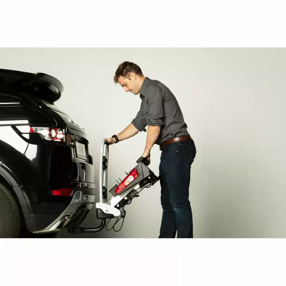 Dank dieser genialen Funktion kannst du auch bei montiertem Fahrradträger jederzeit problemlos auf deinen Kofferraum zugreifen. Du musst den Träger nur vom Auto weg neigen und schon ist die Heckklappe frei.